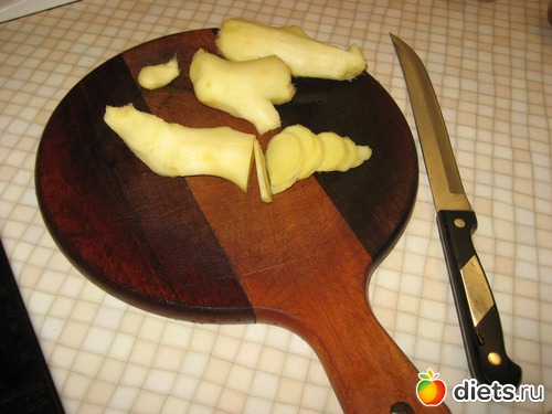 1) Имбирь хорошо помыть, затем очистить. Когда выбираете имбирь, нужно выбирать светлые корешки без плесени. Они обычно самые свежие, сочные.