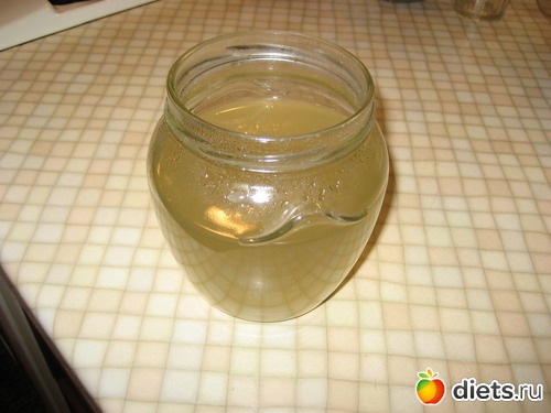 Имбирную воду слить в банку или другую емкость. Из этого "компота" можно сделать отличный имбирный чай - добавить воду, мед и лимон, затем можно добавить немного зеленого чая.