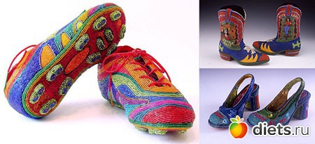 На каждую скульптуру семейная чета тратит не менее 450 уникальных бусин. Но и вещи получаются неповторимыми и немало стоящими. Во многом этому способствует и использование различных драгоценных камней. Разноцветные туфельки, например, можно приобрести за 2 тысячи 800 долларов, а сапожки не меньше, чем за 4!