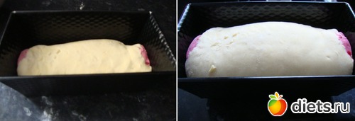 Хлебную форму смазать маслом, уложить рулет и поставить в теплое место примерно на 1 час на расстойку (у меня была духовка с темп-рой 40-50 градусов).