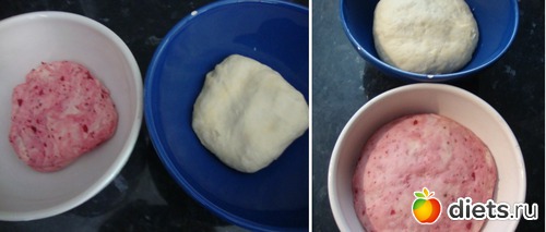 Разделить тесто на 2 равные части, в одну из которых ввести пюре из свеклы.
