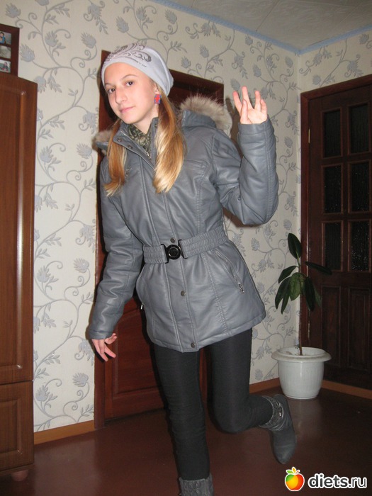 Купили ей вот такую курточку на зиму, сапоги и шапка прошлогодние, как раз вписались в цвет