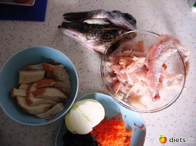 У нас всегда остается фарш, всё в шкуру не влазит, а т.к. терпежу дождаться рыбы нет, то я быстренько кидаю хребет в воду, специи, и варю бульон ( быстро! ) в остатки фарша немного муки и формирую типа фрикаделек и варю в этом бульоне. Фкусно!!