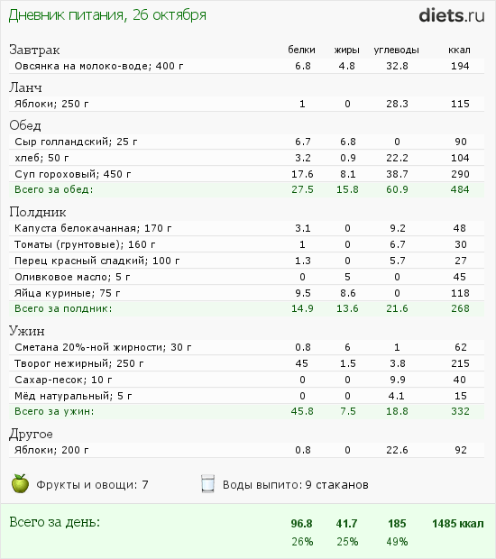 Вчера весь день питалась без вредностей и нарушению В итоге наела на 1487 ккал.