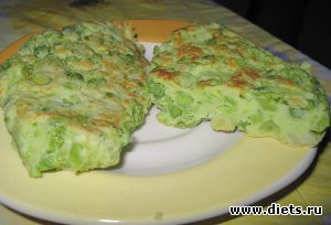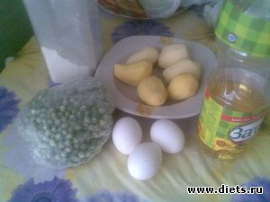 Diets.ru Картофельные оладушки с зеленым горошком (Калорийность на 100г - 122ккал, 1 оладушек (80г) - 98ккал)