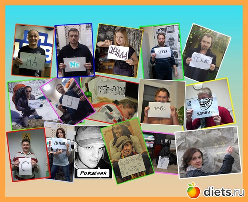 На этот ДР Оля (его жена) задумала ему сделать подарок-сюрприз: она обзвонила всех близких ему людей (друзей) и каждому дала по слову - мы должны были сфоткаться с этим словом и прислать фотку, а она из этих фоток составила коллажик... и вот меня еще тогда покоробило, что она сказала типа "я потом покажу, что получится"... т. е. ясно было, что меня снова никуда не позовут...