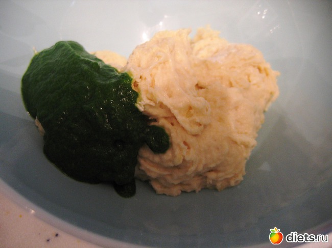 из доминирующих только аромат прованских трав ( на что я и расчитывала), шпинат вкуса не дает вообще, ну только ооочень чувствительный человек почувствует уже легкое послевкусие ( знаешь если ты лапшу шпинатную ела, то слабей чем у нее), а томат не ярко выражен, но есть небольшая кислинка.
