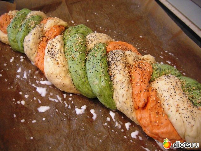 и завтра едем в бабушке, по этому поводу сегодня забацала вот такой веселенький и очень вкусный хлебушек!! Основа теста - картофельное пюро. Тесто получается вкусное и очень структурированное. Рецепт удачен как метод утилизации остатков вчерашнего пюре. У нас никто не ест вчерашнее пюре, а вот всегда немного остается.