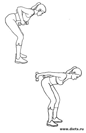 2. Разведение рук в стороны с гантелями, вот так (любуемся)