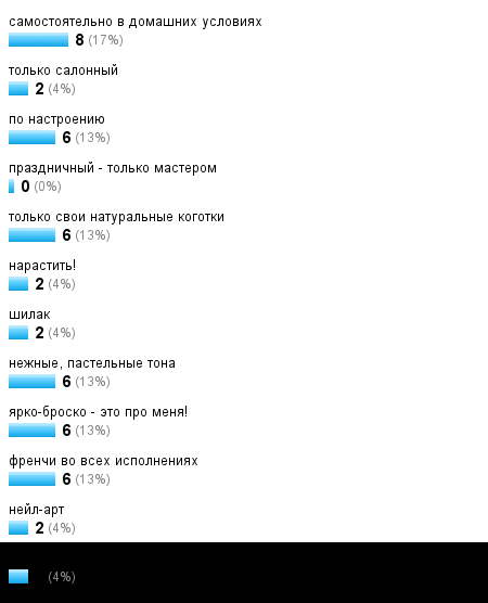 вчера разговаривала с мастером, пока она колбасировала с моими пальцАми.... она подтвердила мои наблюдения, что наконец-то мода на "копыта" схлынула...было время - была бешеная запись на наращивание... ладно те, кому это может быть необходимо по каким-то соображениям, но поголовно...ведь немногие девушки НЕ экспериментировали со своими когтиками)