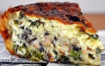 Это пирог-"утилизатор". Начинку, тесто и заливку можно изменять в соответствии с собственным вкусом. Очень понравилось как "вели себя вместе" бри и моцарелла. Киш получился воздушным и очень вкусным.