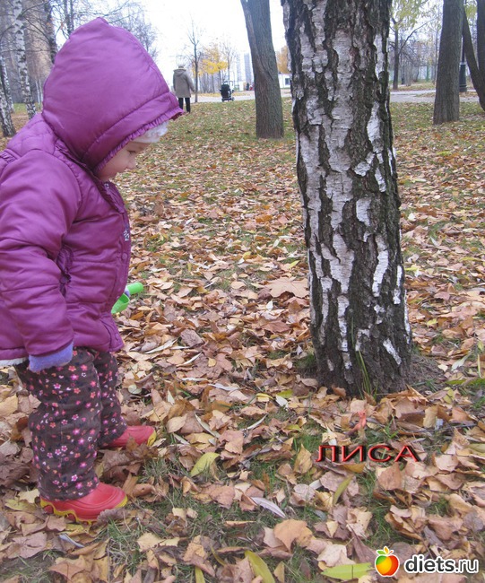 ). Ребенок с самого захода в парк помчался изучать содержимое поддеревьев. Незаметно поставила игрушку в листья около деревца, отвлекла бамбиныша играми. Через полчаса "вспомнили" про лисичку и пошли уже целенаправленно искать. Удивлению и радости не было предела, ребетенок нашел обещанное!