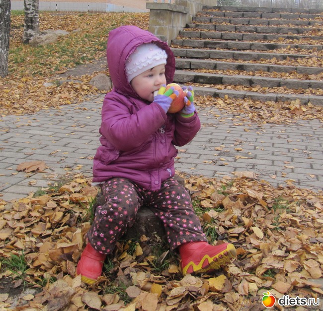 На прогулке осилила одно яблоко, второе грызла бамбина, почти как в сказке: "Не садись на пенёк, не ешь... ТЫБЛОКО!" Хотя у нас демократия: где хошь сили и что хошь жуй.