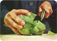 - при помощи острого кухонного ножа избавьтесь от мясистого стебля артишока;