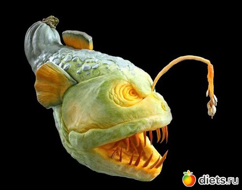 Меня давно привлекает карвинг по овощам и фруктам, раньше только с восхищением смотрела фотки, а потом дети подарили набор ножей для карвинга, теперь сама вырезаю, правда что попроще. Очень увлекательное занятие и конечно очень красивое.
