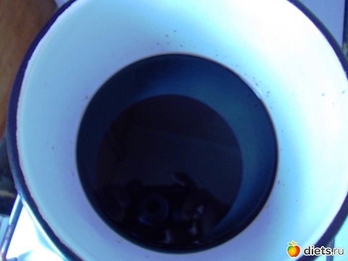 Выливаем его в кастрюльку и выпариваем на сильном огне, пока он не начнёт карамелизироваться. Т. е. примерно загустеет до состояния растопленного шоколада (он, кстати, на него и похож, по виду).
