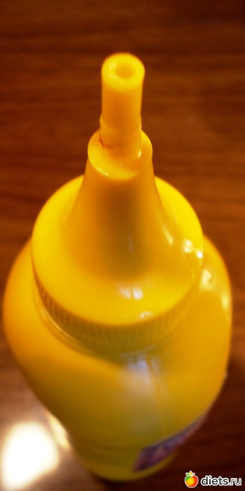 Когда уксус готов наливаем его в ёмкость с тонким горлышком, но достаточно мягкую, чтобы при надавливании можно было выдавить наш загустевший уксус. В идеале, вот такую…Пластиковую бутылочку (у меня из-под горчицы).
