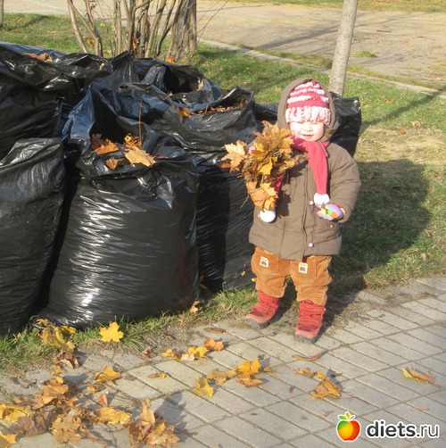 5. Покатушек сегодня не было. Просто хорошо погуляли по солнышку. Опять "помогали" дворникам с уборкой листьев, на сей раз в довольном вандальном виде