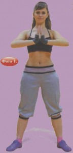 И. п.: стоя, ноги на ширине плеч, на линии груди сложить руки вместе, ладонями внутрь (фото 1).