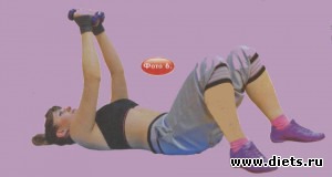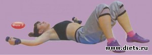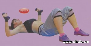 И. п.: лежа на спине, ноги согнуты в коленях, руки согнуты в локтях, в руках гантели или бутылки (фото 5).