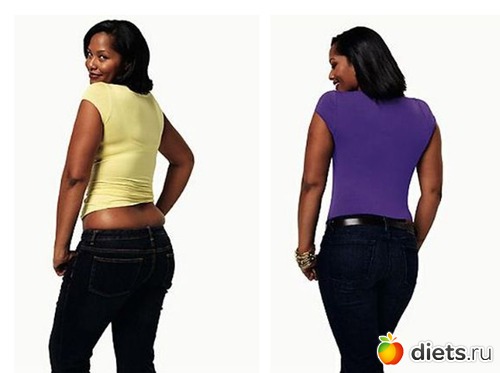 Обтягивающие джинсы создают лишний объем в области талии. Чтобы избежать этого нужно отказаться от светлых рубашек и джинсов с заниженной талией.