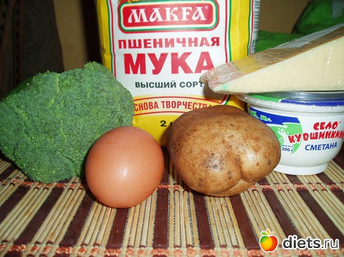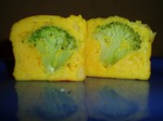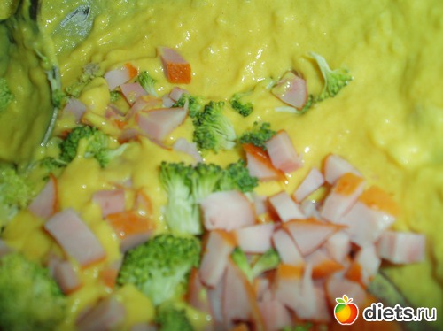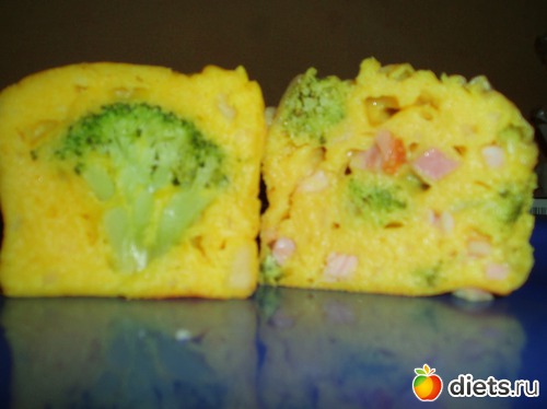 можно в таком варианте сделать: порезать брокколи, копченую курицу (да все что вам угодно) смешать с тестом и выложить в формочки