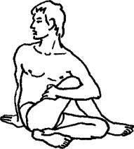 * Согнуть правую ногу в колене, завести её под левую ногу и положить на пол пяткой к внешней стороне левой ягодицы (женщинам - левую к правой ягодице).