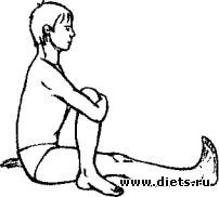 * опираясь на правую руку, лежащую ладонью на полу, обхватить кистью левой руки наружную сторону левого колена