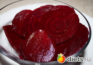 Существует специальная монодиета, которой можно придерживаться не более двух (!) дней. В этот период меню состоит из вареной или запеченной свеклы — не более трех средних корнеплодов без соли. Следует также пить зеленый чай, свежие овощные соки и минеральную воду без газа — не менее 1,5 л в сутки.