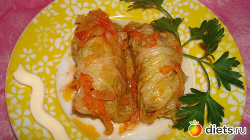Начинка: 0,5 кг фарша(свино-говяжий)+ 2-3 ст. л. риса(я его не отвариваю предварительно)+1 ст. л. томатной пасты(по-моему наблюдению, так сочнее, соль, перец