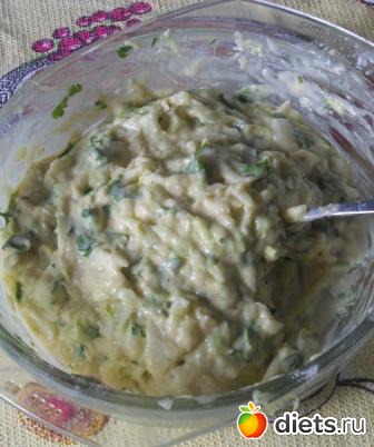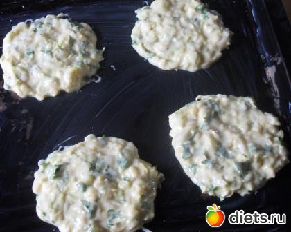 Вылаживаем с помощью ложки и в духовку на 20 - 30 минут, все зависит от размера оладьев и вашей духовки.