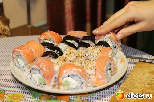 Позавчера мучилась - мне так захотелось рол, что мне даже снилось как я их ем. А так как у нас в городе приличные ролы не достать, то вчера первый раз в жизни попробовала сделать ролы сама! И довольно таки не дурно получилось хочу отметить! Муж сказал что по вкусу напоминают ресторанские. Правда внешний вид не много подкачал, но мы будем совершенствоваться))))