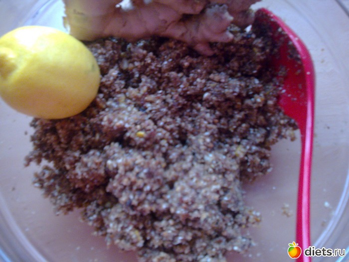 Причем состав можно менять в зависимости , от имеющихся продуктов . Пикантность дает лимон и корень имбиря ,мед дает