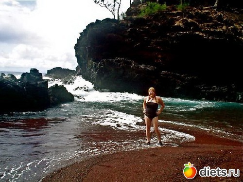 На одном из Гавайских островов - острове Мауи - пляж имеет насыщенно-красный цвет. Виной тому потухший вулкан Кауки, находящийся на южном берегу этого острова. На красный пляж давно приходят поклонники нудизма, так как он расположен довольно далеко от основ цивилизации, и добраться до него не так-то и легко.
