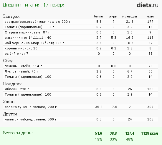 Вот моё меню на день!
