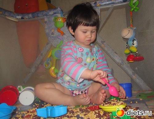 Ребенок сыт, умыт, нагулялся, поспал и ждет маму. Мячта...