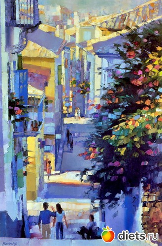 путешествует по европейским городам, деревням, холмам, и этот контакт с внешним миром переносит на холст, создавая свои замечательные картины.