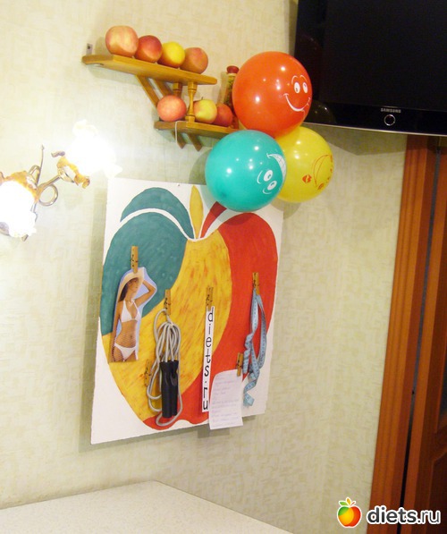 Затем повесила на прищепки все что меня подбадривало к стройности.