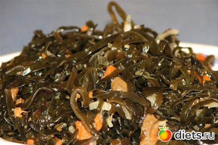 Морскую капусту можно успешно использовать в диетическом питании. От нее практически невозможно поправиться. Энергетическая ценность для 100 г продукта - 350 ккал, белков содержится 12 г, углеводов - 70 г, жира лишь 0,5 г. А белковые вещества, содержащиеся в ламинарии, очень плохо усваиваются - всего на 37 - 65 процентов.