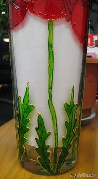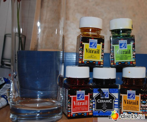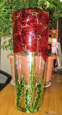 Роспись стекла одно из моих любимых занятий. Одну из своих работ я показывала в дневнике, где в комментариях меня попросили рассказать, как это сделать. Постараюсь подробно, с наглядными картинками и поэтапно описать все действия.