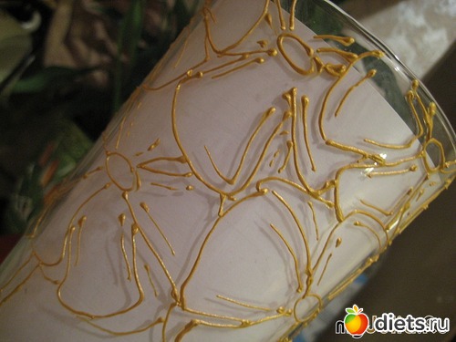 1. Рисуем с эскиз карандашом, можно сразу контуром. Эскиз можно рисовать из головы или взять понравившейся рисунок и перевести его на вазу, через копирку
