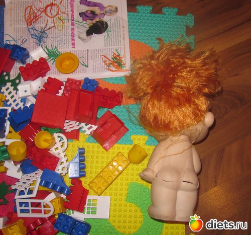 ... Дальше мы уже дома. Историю выше оставлю без своих комментов, интересно ваше мнение. Извлеченный из недр заначек конструктор на полдня увлек моя бамбину, а квартира стала равномерно покрываться слоем запчастей. Попробовала устроиться на диван почитать книжку и на себе почувствовала "если у вас в доме дети, куда ни сядешь - в жопе кубик".