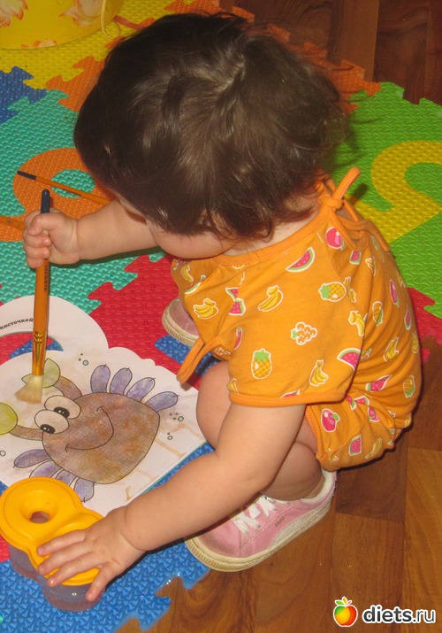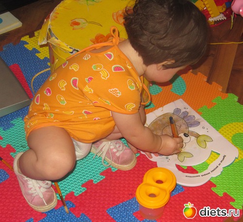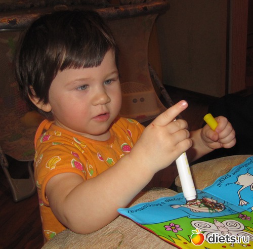 Сначала мы просто рисовали, книжку, которую нужно расцвечивать водой, штриховали фломастерами.
