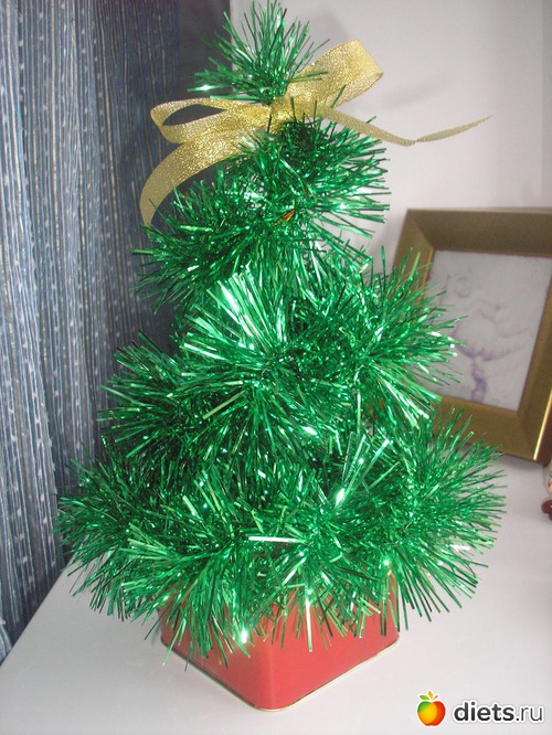 Подарки к новому году Привет, девочки! Ломая голову о новогодних подарках близким, в инете нашла массу интересных идей по их оформлению. Вот что получилось.Ёлочка ещё не совсем готова(осталось повесить маленькие конфетки-игрушки).Основа елки-жестяная коробка из-под чая, набитая конфетами и обтянутая декоративной бумагой. Каркас ёлки-проволока, обернутая мишурой.А корабль-ликёр и конфеты