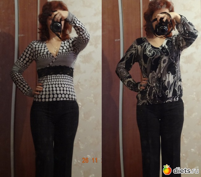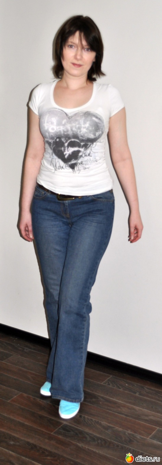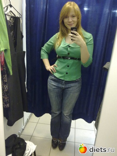 Джинсы отлично подтягивают животик и попу, а кофточка позволяет продемонстрировать красивые плечи, и при данном типе фигуры, совершенно не их заужает.