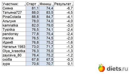 И, конечно, кроме результатов, выраженных в цифрах, все мы получили навыки, полезные в соблюдении правил питания, в контроле над своими мыслями по поводу еды, новые привычки!