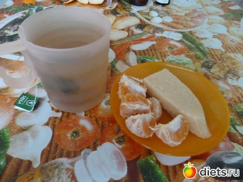Перекус: 50 гр. 15% сыра собственного приготовления и мандаринка;