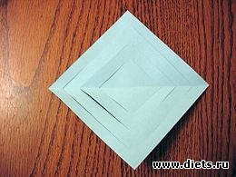 3. Раскройте сложенный по диагонали квадрат, и положите перед собой так, как показано на фото ниже.