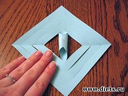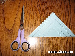 2. Сложите каждый квадрат пополам по диагонали, чтобы сделать ножницами внутренние надрезы.