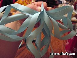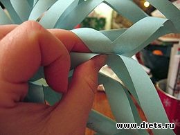 6. Продолжайте переворачивать снежинку и скреплять оставшиеся полоски. Вот что должно у вас получиться.